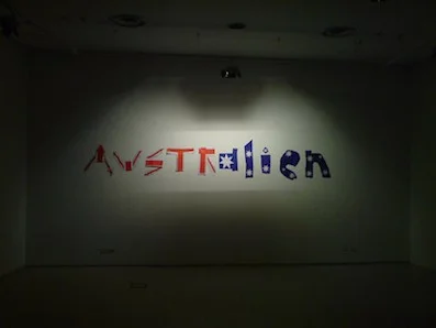 Image: Din Heagney, AUSTRALIEN, 2007, cut flags (installation view), PB Gallery, Prahran.